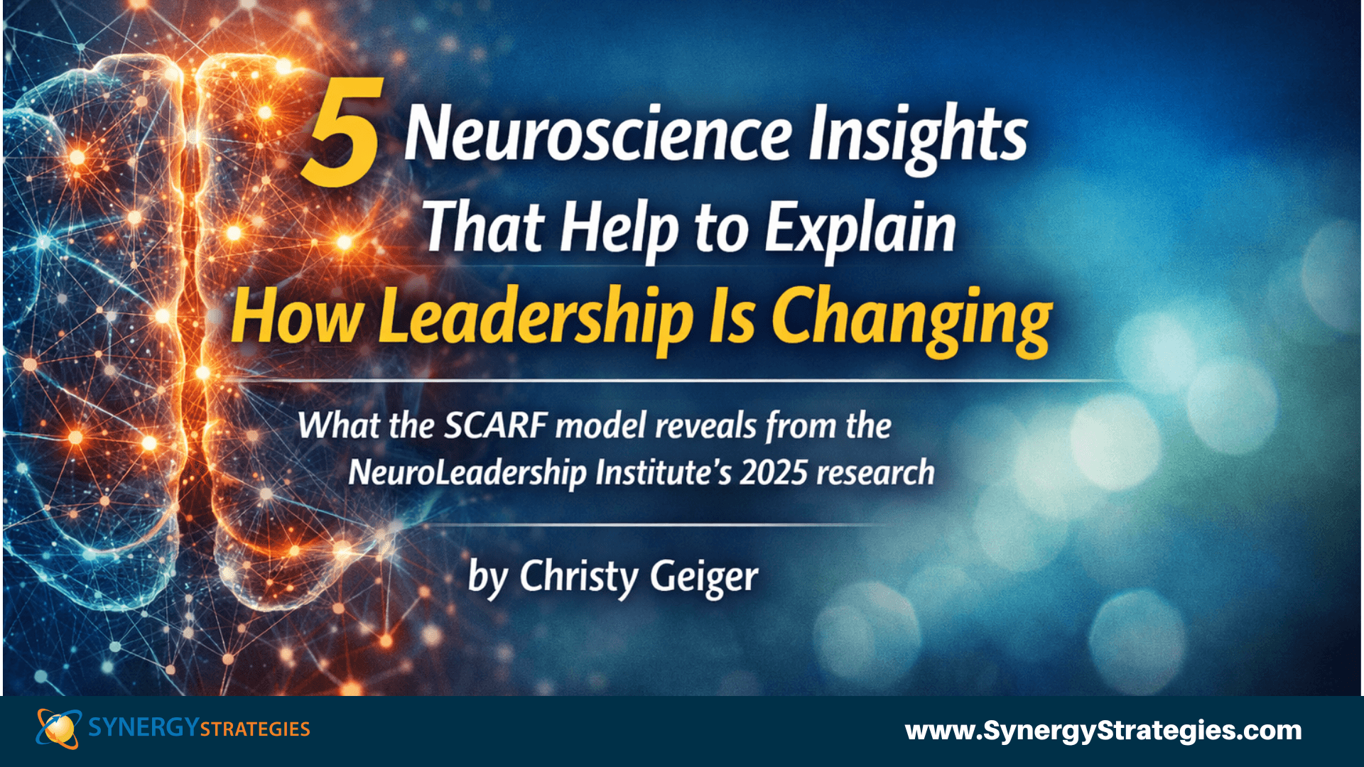 SCARF is an excellent framework for understanding five social drivers that can move us from our executive functioning center, where we are clear, thoughtful, and grounded, into a threat response where we are operating “under” stress. That "under state" is where the amygdala takes over and we shift into fight, flight, or freeze. In 2025, the NeuroLeadership Institute revisited SCARF and re-studied the leading drivers across general society. What they discovered was not that SCARF needed to be replaced or expanded. No new variables were required, and none were removed. Instead, what changed was the order of importance. In coaching work, when people are triggered, it is common to see several SCARF domains at play. Additionally, leaders also need to continue to have awareness and directly communicate to hit all drivers to create safety. The assessment is interesting, however, because it highlights the primary drivers that were most sensitive in 2012 compared to how those drivers have reordered in 2025. This 2025 re-polling helps reveal what is changing and what is becoming more important for people, which in turn impacts how leaders communicate and lead effectively.